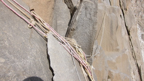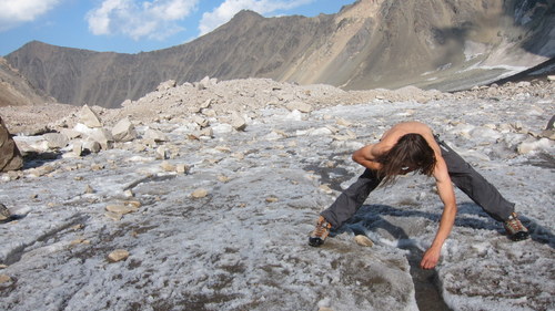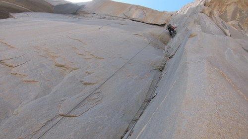 Následující den byl rest. Ostatně nikdo nešel lézt, jelikož byl ohlášen vrtulník, který měl vyzvednout zmíněné ostatky. Balili jsme se tedy na lezení v trojičce s Nasim a sledovali záchranářskou akci, jak vystřiženou z absurdního divadla. Jen zmíním, že tělo vyzvednuto nebylo. Pouze bezprizorní svačina postaršího data došla klidu v jednom z žaludků. Nasim nás obohatila koncepcí své výbavy. Vážně. Bohužel nás také obohatila o pár dekagramů navíc a následující vynášku materiálu. Ta byla poněkud lichá, poněvadž nás málem smetla kamenná lavina v nástupu. A druhý den jsme stejně nebyli o nic rychlejší než s vybavením.