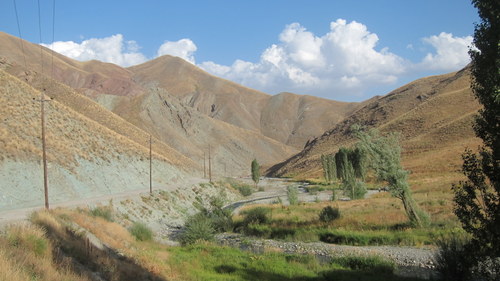 V Teheránu to bylo o rozum. Samozřejmě jsme neměli zjištěno a zajištěno vůbec nic. Tágo, výměna kaček (naráz jsme byli milionáři), hledání hostelu, všechno hrozně drahé, hledání internetové kavárny. Naštěstí bylo vedro a ramadán, takže jsme pěkně poznali kus Teheránu bo většina podniků byla zavřená. Kluci si pak dali pár hodin shánění jídla a průvodců. Já umíral na ulici žízní. Velká atrakce pro místní. Každý čuměl, zastavil, někdo šprechtil penglish (persian english), nabízel vizitky, čísla, kámoše a já nevím. Ramadán jsme pak atakovali a nadlábli se v jedné zapadlejší uličce. Zjistili jsme, že metro má supersrandovní ceny (dáš asi 6kč a můžeš jet třeba 5 hodin pod zemou). Ze severního terminálu jsme dojeli do Karaje, tam usmlouvali bus a konečně jsme byli v „horách“ v oblasti Pol-e-Khab. Konečně, za tmy pryč z mumraje a dostáváme se k lezení.