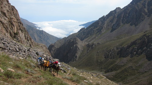 Po prohlídce Teheránu jsme se vydali s Nashim na cestu pod Alam Kooh. Náš rozpočet zde rozhodil fakt, že v maršrutce jsme jeli pouze my čtyři. Zbytek spolulezců od Nashim zkrátka nedorazil. Naši mysl dále rozhodil fakt v podobě Vojtovy těžké nevolnosti. Zkrátka vrchem spodem, slabost i hlava. Po celodenní cestě jsme se konečně ocitli v turistické základně Road Barrak, což obnášelo i zaplacení vstupního poplatku, který je vymezen pouze pro cizince a to ve výši cca 20 dolarů (pro studenty asi 50% sleva). V poslední základně Vandarboon nastalo přebalování a vážení materiálu na zítřejší transport pomocí mezků. Ráno, po složité domluvě, jsme se rozloučili s Vojckem. Jeho stav totiž nedovoloval pokračovat do basecampu. Domluvili jsme se tedy, že se prozatím zkusí stabilizovat dole.