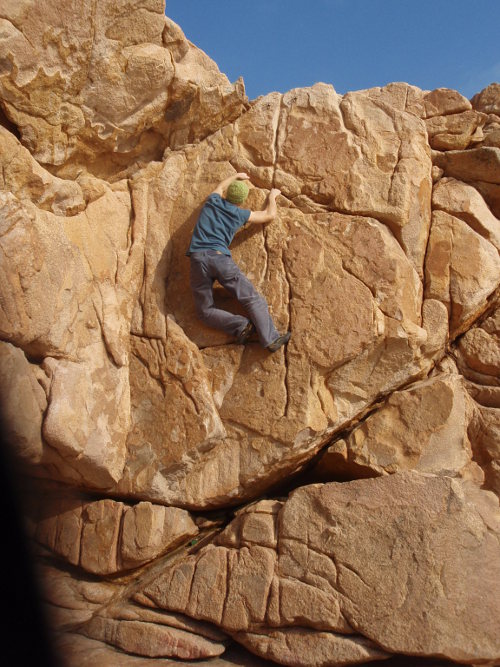 rajbák – Butt crack 6B+ (čínský nápis hlásá Nesni!)