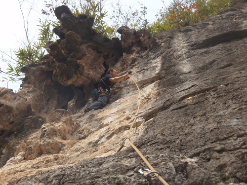 smallNe, nejedná se o popis zoufalého pokusu o lezení po obědě v čínské restauraci, ale o popis toho, jak jsme měli s Eliškou možnost hlavně díky jejímu studiu v Hongkongu skalkařit v Zemi středu.