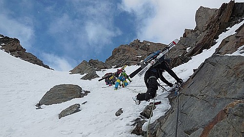 Zázračné uzdravenie, som plná energie a sily. Asi pomaly začínam tušiť, že to prežijem. Váľajúce oblaky strieda lenivé slnko. Pospevujem si „stúúúpanie je zo všetkého najkrajšie, stúpam rááád, je to na mně znááát“. Teda až do úseku, kde si musíme vypnúť lyže, lebo svah pred nami je taký strmý, že doňho narážame čelom. Bojím sa, ale oproti prasačine na Weißkugelu je to rýchlovka.  Trhliny na ľadovci Taschferner sú hlboko pod snehom. Prichádzame do sedla tesne pod vrchol  Wildspitze 3 774 m kde sa to hemží skialpinistami, ktorí už majú výstup za sebou. Dojedáme posledné zásoby, obúvame mačky, berieme cepín a za pol hodinu si veselo kvíkame sami pri kríži. Zjazd je divoká jazda, berieme  to najkrajtšou cestou do Ventu - zlaňujeme feratu. V lete 20 minút, v zime 2 hodiny. Stáli pri náš všetci svätí, pod nástupom sme si všetci vydýchli. Zjazd je perfektný, terén po dlhej chvíli striedajú zjazdovky s poslednými zbytkami snehu.  .  Na parkovisku skáčeme meter dvadsať, že sme to úspešne zvládli a do sýtosti sa objímame.