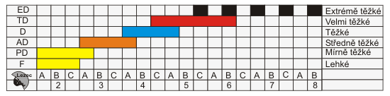 · obtížnost zakódovaná v barvě