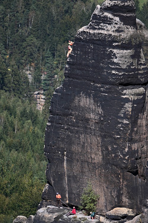 8.7.1972, Bernd Arnold, Rauschenstein - Lange Westwand , první IXc , Arnold ji pak v osmdesátém napřímil a přejmenovala se na Lange NW Wand (takže první "céčko", které najdeš v průvodci je Superlative na Grosser Wehlturm).