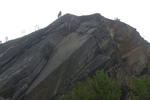 probíhající sanace nad převisy, kde jsou nejtěžší cesty