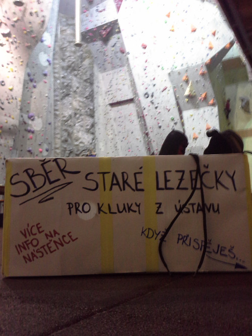 V Praze na Smíchoffce provádíme sběr starých lezek v libovolném stavu, velikosti nad 35. Lezky budou používat kluci z Diagnostického ústavu pro mládež (dius.cz), kteří se v rámci výchovně-zážitkových programů s nadšením vrhají do lezení. Na nákup vlastního vybavení mají jen velmi omezené prostředky a věci si tak většinou půjčují.