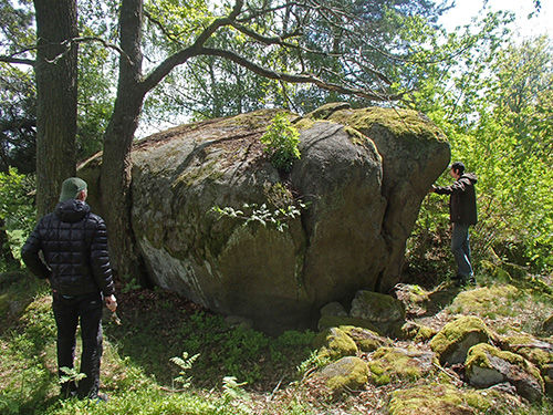 ... před pár lety jsem v podobném duchu očistil pár boulderů, které nejdete v lese nad silnicí spojující Dražku a Chválov. Pojedete-li po oné silnici, je to odbočka doprava na lesní cestu kousek za farmou. Po cestě cca 500m až dojedete k nádhernému bukovému lesu, tam lze i zaparkovat. Většina boulderů je napravo ve svahu, něco bylo i dole pod cestou. Pouze pro těžké romantiky, ale máte-li třeba cestu kolem ... :)