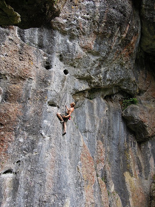 New Orleans i Kompresor jsou cesty o několika těžkých krocích, v jedné je klíčem bolavý spoďák a pata, v druhé pak žába ve spáře. Zatím nejtěžší mi přišla DBS, je to vytrvalostní linka s několika bouldry a vytrvalost není moje silná stránka. Oproti desítkám co jsem v poslední době dal byly tyto cesty víc na tělo, prsty silné v dírkách se předpokládají na celou juru. Rada pro ostatní by asi byla, ať zkusej o dva stupně těžší cestu než je jejich maximum, a to takovou o které se ví, že je v daném stupni lehčí.