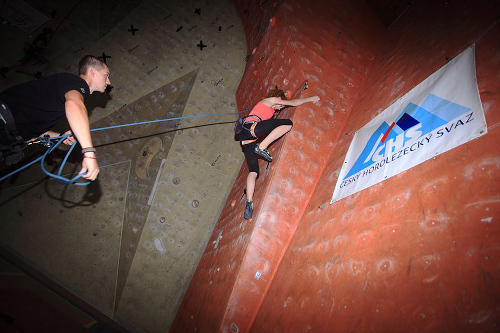 První na řadu šly holky, jmenovitě to byla Eliška, ta se s cestou prala statečně, přelezla spoustu starších závodníků, až dolezla do místa, kde se šlo přes pravý chyt na hraně do spoďáku, to ji zastavilo. Terka, která šla hned po ní, se zamotala u druhé expresky, kde byl krok doleva přes zapuštěný chyt, toho si však nevšimla, takže dlouhým nátahem problém vyřešila a proběhla celou cestou až do třetího chytu od konce a předvedla tady prozatím nejdelší pokus dne! O stupních vítězů bylo tedy rozhodnuto: první Tereza Cibulková, druhá Eliška Bulenová a třetí Emma Deuserová.