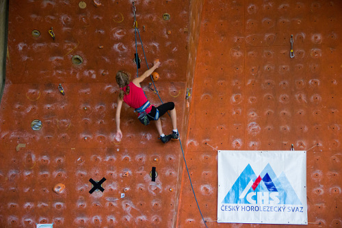 Na místech třetích se umístili Duroň Alexandr a Lottová Magdaléna, kteří sice nedosáhli ani na jeden top, ale i přesto dolezli v některých cestách hodně blízko! Nejstarší kategorie kluků dopadla na výbornou, zde si vítěz Hejdušek Radim zapsal 3x top a z nejtěžší oranžové cesty výkon 66+, takže o prvním místě nebyl pochyb! Druhý Výrostko Kevin měl na kontě 2x top, leč cesty, které tato kategorie lezla na prvním konci lana, ho nepustily. Třetí chlapec Schierl Matěj neukořistil top ani jeden a výsledky zde i na dalších místech byly hodně vyrovnány. U nejstarších holek se čekalo na rozuzlení o první místo mezi Hanou Křížovou a Kubátovou Terezou. Holky čekala nejtěžší oranžová cesta. První šla na řadu Tereza, ta se s cestou prala dobře, ale bylo vidět, že síly s nabranými metry ubývají, až přišel silový krok na hraně převisu, který znamenal pád a výkon 60+. Pak přišla na řadu Hana, ta už v cestě od pohledu bojovala míň, když se dostala do silového kroku na hraně, tak se maličko zavlnila, ale oblý chyt udržela a udržela ještě další, tímto výkonem si tedy zajistila první místo a děvčata se povedlo též rozřadit na výbornou. Třetí místo patřilo Tvrzníkové Nele, která dosáhla na jedet top a tři vyrovnané výkony. Zbývalo tedy počkat co kategorie "Déček". U kluků kategorie D bylo jasno skoro hned, protože jak Marek Jeliga, tak potom i Ondra Mázl topovali i svoji čtvrtou cestu, bylo tedy jasné, že se můžem těšit na superfinále! Holky to neměly jinak i přesto, že první "troj-topařka" Emma Deuserová cestu nevylezla, po ní však další Eliška Bulenová a Terka Cibulková cestu vylezly, takže super finále číslo dva!