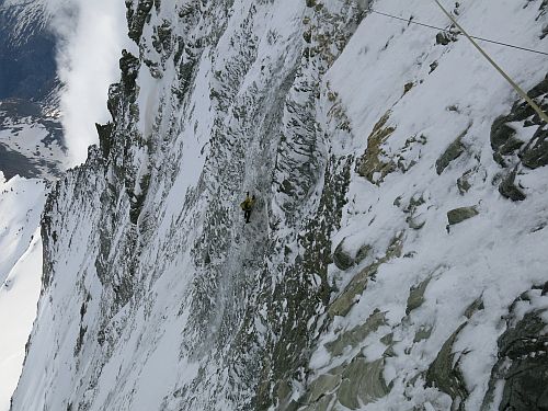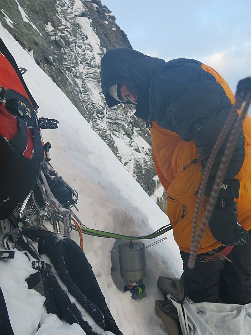Nechci komentovat odvážný výstup severní stěnou za nevalných podmínek, ale asi mi nějak ušlo jestli jste zaplatili za přespaní na chatě Solvay. Ta není určena na bežné bivakování nýbrž jenom a jenom „k záchraně zbloudilých a ztroskotaných“. Je v ní 10 míst, telefon a paušálně každý, kdo jí využije, by měl za hlavu zaplatit 20 franků SAC, švýcarskému alpinskému klubu, který ji udržuje a provozuje. Ale to třeba ještě stihnete mezinárodním bankovním převodem. Jinak by mohlo dojít k negativnímu paušalizování vztahujícímu se na české horolezce – a to přece nechceme,ne?.