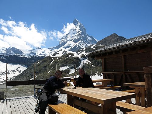 Ráno okolo desátý dorážíme do Zermattu. Auto parkujeme tradičně u Fredyho. Nastává oblíbená hra - co nemáš, nepotřebuješ. Hrajeme asi 6 x 10 minut a o přestávkách prokládáme pivkem a pojídáním všeho co by mohlo při zanechání odpochodovat z auta samo. Procházíme Zermattem plným turistů v nových goráčovkách a težkých pohorách. Je vidět, že většinou nikdy neopustili asfaltový chodník. Cestou míjíme mapku s lanovkami. Nesvítící zelený křížek u lanovky na Schwarzsee slibuje pěkný celodenní výlet z 1700 m k chatě v 3300 m. Příchod k lanovce potvrzuje naše nejčernější obavy, na Schwarzsee jen o víkendu. Navíc u pokladen visí cedule – Chata v rekonstrukci, žádná možnost přespání, winter raum zrušen. Prostě paráda. Nakonec volíme lanovku do jiné části údolí s tím, že nás čeká tří kilometrový pochod přes sněžné pláně. Ještě že mě Jarda ukecal na sněžnice, jinak jsme mohli jet domů. Lehký boj s paní pokladní, která není schopna pochopit naší kombinaci jízdenek. Na druhý pokus a vrácení části peněz na kartu docházíme ke kompromisu. Koupíme si lístek nahoru, dolů to pak nějak uděláme.