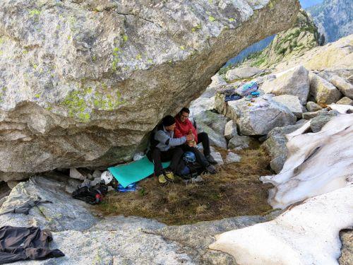 Fajn, že jsem si svůj spací flek musel nejdříve pěkně odhovnit, i to, že v noci pršelo a kámen nebyl zdaleka tak vodotěsný jak vypadal, to by se ještě dalo skousnout. Také to, že zatímco Kuba celou dobu chroupal v pytli, já bez pytle měl na programu noci hledání místa, kam zatýká nejméně. Ale proč letí nahoru jak pomatenec, vždyť před námi stejně nikdo není. Výhledy jsou mi šumák, víc mě teď zajímá, abych mu stačil.