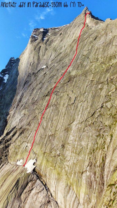 Podle průvodce prý šestbéčkoplusový klíč přes sérii převísků se zdá subjektivně lehčí než úvodní délka. Sekvence pozitivních škrabek kolem malého převisu kompenzuje špatné stupy, na které není moc vidět. Je třeba si v klidu pohrát, poladit pohyby a moc nepanikařit. Expozice nabírá na obrátkách. Tempo se dá znovu nabrat v sérii parádních odlupů a sokolů výše. Sem tam nýt, sem tam mini kámoš. To, co se z počátku zdálo jako trochu monotonní otlačovaní palců u nohou, se nyní mění v opravdovou jahodu, aneb slovy prvovýstupců, zase jen další den v ráji.