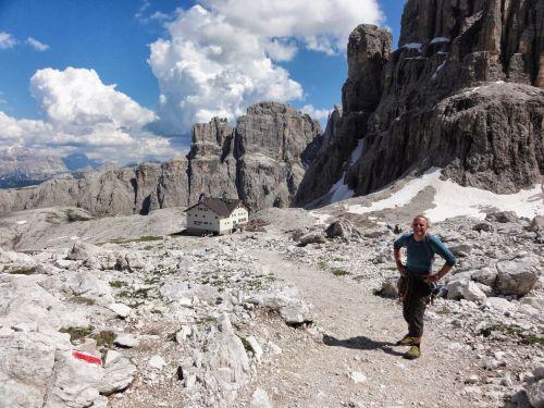 Vlastně i všechny následující dny se ubírají v podobném stylu. Počasí se opakuje s železnou pravidelností vymeteno, přeháňka, vymeteno a z Grodenských Dolomit se nám zatím nikam nechce. Stačí se zeptat Armina na pár hesel typu světová strana, nýty, parádní skála, několik piček a hned nás posílá k masivu kolem Brunecké věže ke všem pisciadským murům a nekecá. K tomu všemu ještě přihazuje hodinové nástupy jako bonus.