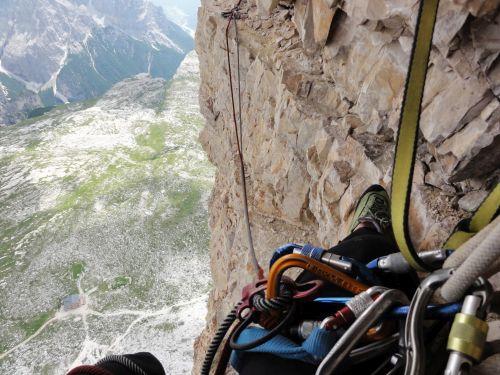 Na řadu přichází dluhy ze Švýcarska. Komfortu pevné skály a nýtů předcházel ústupek dobrovolného čekání ve frontách na háky, plácání se v rozchrastech a sedání do hnilob. Každý kdo někdy lezl v Dolomitech nějaké starší klasiky, ví o čem mluvím. Že jako je třeba si doplnit nějaké to vzdělání na Čimách. Pár let zpátky po zkušenosti s malým Cassinem jsem zde pionýrsky slíbil, že klidně zůstanu o tuhle zkušenost blbější. Takové to rčení sliby chyby, to nicméně pořád platí.