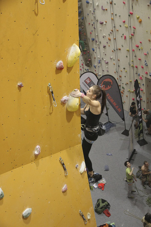 Vzhledem ke stavu chytů ve skladu a výškovým rozdílům kategorií závodního pole jsme museli zvolit improvizovanou verzi. Tedy dvě ne zcela identické cesty obtížnosti kolem 3b. Pro postu do dalšího kola byl cíl zcela jasný, šáhnout na top, hranu stěny dřív než soupeř.