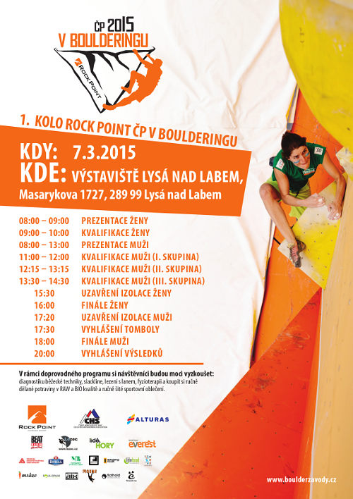 smallV sobotu 7. března se uskuteční 1. kolo Rock Point českého poháru v boulderingu, který je zároveň nominačním závodem na SP. Závod proběhne na Výstavišti v Lysé nad Labem. Aktualizace