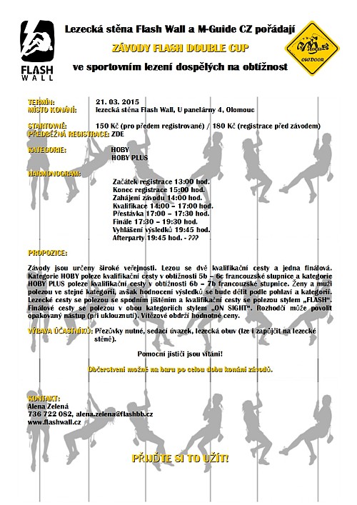 smallLezecká stěna Flash Wall v Olomouci a M-Guide CZ pořádají ZÁVODY FLASH DOUBLE CUP ve sportovním lezení dospělých na obtížnost