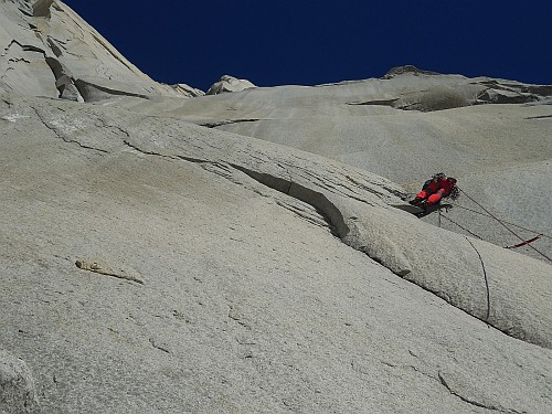 O to více obdivují výkon italského týmu, který linii v roce 2007 vytýčil. Domnívají se, že cesta je možná pro free přelez, kromě třetí délky, kde je žula naprosto kompaktní a hladká.