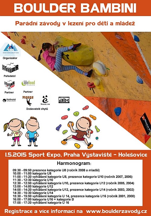 V pátek 1.5. se uskuteční dětské boulderové závody Boulder Bambini 2015.