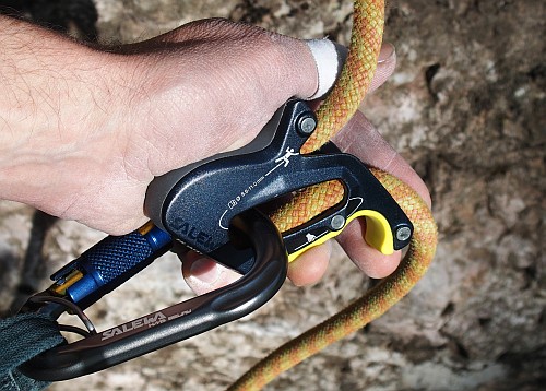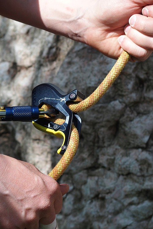 Pro plynulé podávání je třeba si osvojit určité podržení - povytažení jistítka za palec, což je naštěstí zcela intuitivní a není k tomu potřeba výrazné síly. Karabina v rovném průřezu čistítkem při rychlém povolování neposkakuje jako u Click-Upu, zejména když máte novější lano. Zaseknutí a chytání pádů je podobně bezproblémové jako u jiných poloautomatických jistítek. Je dobré zdůraznit, že pro bezpečné jištění je nezbytné po celou dobu lezení spodní rukou kontrolovat konec lana jdoucího dole z jistítka.