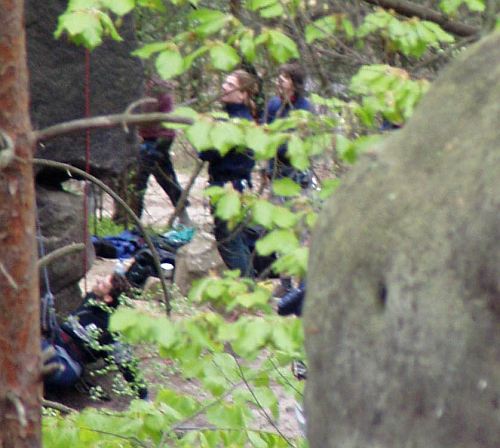 Procházím se tak po červené značce kousek za odbočkou ke Zdenině skále, když z dola  z údolí slyším typické zvuky, které bych zde čekal za suššího počasí. "Já to dolezu!" Ozývá se neznámý hlas a mě dochází, že někdo zde asi opravdu leze. "Že by zde platila nějaká vyjímka a mohlo se tu i po dešti?" Pomyslím si neb tuto oblast neznám, ale zdejší písek mi nepřijde z nejtvrdších a jsme v Českém ráji, kde se pokud vím nesmí lézt 48 hodin po dešti.