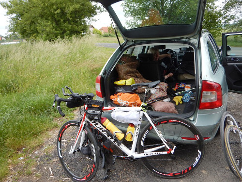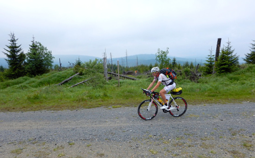 Ne, ani jednu! Vše fungovalo naprosto skvěle a dodnes nemohu věřit tomu, co kolo vydrželo. Vždyť jsem najezdil dobrých 150 km po polních a lesních cestách. Dokonce jsem ve sjezdu přes velké kameny předjížděl i bikera tlačícího kolo dolů. Bylo to ve sjezdu z Pradědu přes Švýcárnu na Červenohorské sedlo. Lidé si ťukali na čelo, co tam ten magor dělá na silničce navíc s brašnami. Mnohdy jsem si ale terénní vložkou ušetřil i desítky kilometrů. To kolo by si zasloužilo postavit muzeum – stejně jako mé tělo totiž překonalo samo sebe.