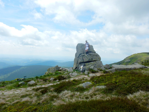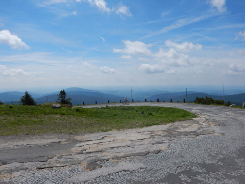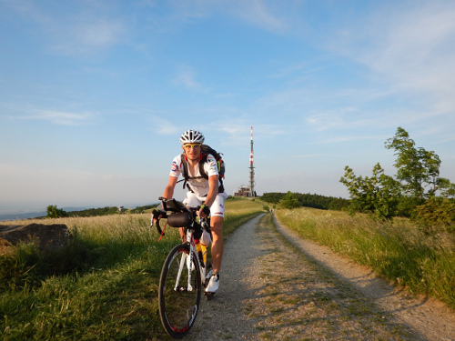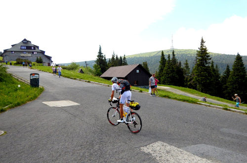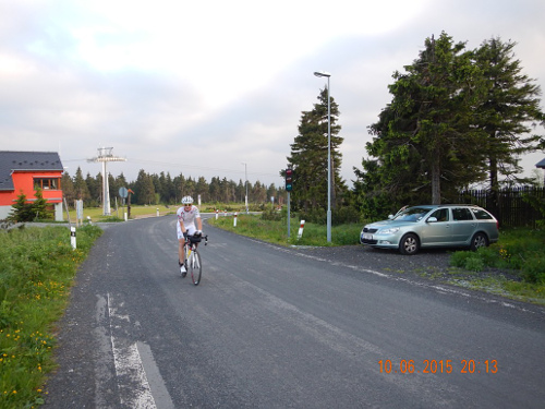 10. 6. (20.00): Klínovec zdolán, z Prahy 135 km a 2364 m. Dnes mě byl na trase pozdravit kamarád z Bike Campu Jarda. Milé shledání!