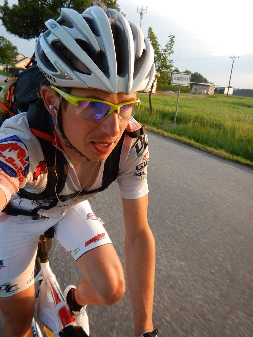 12. 6. (9.00): Spal jsem necelé 4 hodiny v posteli u rodiny, dobrá regenerace. Javořice mě vyškolila – bloudění. Teď mám 200 km v protivětru na SK hranici. Připomínám: projekt má i charitativní část ;-).