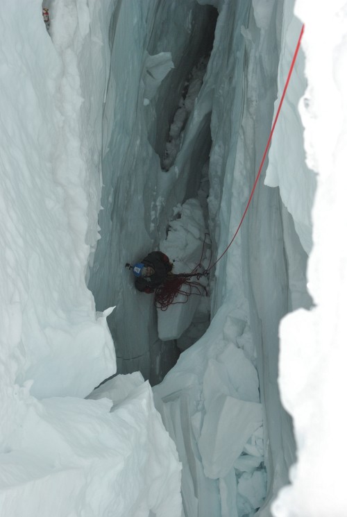 6:00 budíček, cítím se OK, ale fakt mi vadí další 2 chlapi ve stanu. Vyrážíme s vynáškou. Spojujem se s Betonářema a Ostravou. Po prvním výšvihu začínám být KO. Po každých 10 krocích se motám, chce se mi zvracet. Otáčím 5950m, předávám materiál. Sem úplně v prdeli – motám se, klopýtám. Do C1 dorážím úplně KO, sem rád že vidím kluky (Krejčus, Kejkla). Skládám se do předsíňky stanu a spím. Mára sjel do BC, bylo mu blbě. Další dva dny má být luxusně, chtěl bych do C2 a pak hned dolů. Kluci šli do C2 5h, prý úplně prošití, ale je tam krásně. Odp se cítím dobře. Doráží Mára, nálada super. Do C1 míří zástupy lidí, chci vyrazit ráno v 5:30 abych se vyhnul frontám na fixech. Vedle si stavějí stan Australané (sympatický pár). Jdu spát v sedm, drobně sněží. Na 6:00 domlouvám rádio s C2. Celou noc hustě sněží, několikrát odhrabávám stan. Ve 3 ráno se začíná blýskat, bouře trvá cca hodinu, mezi hromy slyším dunět laviny. Myslím na kluky v C2. Proč to dělám? Jsem rozhodnutej jít do BC. Odkopávám stan. Krejčus a spol chtějí stále do C2. Volám si s C2, potvrzují také sestup. V osm mi z C2 potvrzují sestup, objevuje se slunce – vyrážím dolů. Za 10 min se slunce vytrácí a začíná opět sněžit. Totální difuze, chvíli hledám začátek fixů, trhliny jsou zapadané, je to boj. Po 3h jsem v BC – Mingma a Bim mají radost. Dlabu těstoviny a mám radost, že jsem sestoupil. BC pod sněhem. Přichází na pokec Tráva. Dochází Tom a Pavel, ostatní zůstali v C2. Přemýšlím, jestli nejsem sračka.