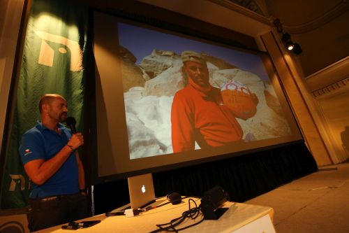 Štafetu si pak převzala legenda slovinského horolezectví Viki Grošelj, který ve stejném gardu prezentoval prvovýstupy Slovinců.