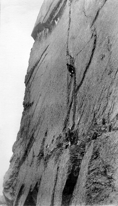Stredom steny - Platňou (V+,A2,RP:8-), P.Ballay, P.Pochylý, 11.7.1962