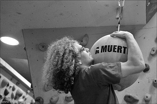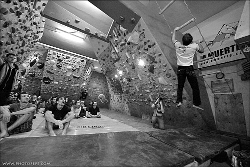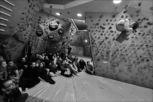 Do desetiboje nakonec šlo v Brně 13 lidí. Holky se zatím ještě neodvážily, tudíž to bylo chlapské představení.  Adam všem představil disciplíny, vysvětlil pravidla a mohlo se začít. Kampus na rychlost i vytrvalost, protáčecí se bacharův žebřík, vis na kouli, poskoky obouruč na kampusu, po stiscích, na mini lištách, shyby a další pekelné úkoly siláci absolvovali. Atmosféra byla parádní. Fandilo se naplno a výkony byly neuvěřitelné.