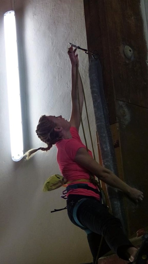 Na ženy čekala cesta s mírně převislým začátkem, který je dovedl do stropu. Závěr byl opět silovou záležitostí ve stopu a na trámu. Letos chyběla dlouholetá mnohonásobná vítězka Eliška Karešová, a tak to ženy měly o něco jednodušší. Nejdále dolezla Lucie Smolová (HO Železný Brod), za ní skončily Natálie TužováŠárka Hvězdová (obě Komorní výtah)