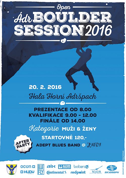 Letos jsme závody pojali v trochu větším měřítku, s čímž nám nejvíce pomohla známá firma, jež vyrábí lezecké chyty, a to AIX, která nám umožnila svou mobilní boulderingovou stěnou o výměře 80m2 uspořádat akci na úrovni hodné Českému poháru. Tímto bych jim moc rád poděkoval za to, co pro nás udělali, díky kluci. Dále patří velké díky našim sponzorům, kterými jsou již zmiňovaní AIX, Obec a TS Adršpach, HUDY Sport, Café Bar Kalírna, Makak, Blue Fly, Redpoint, Adr Design, Ocún, Continental Adršpach, Baterca, Aguglia, Sir Joseph, Lukáš Krecbach.