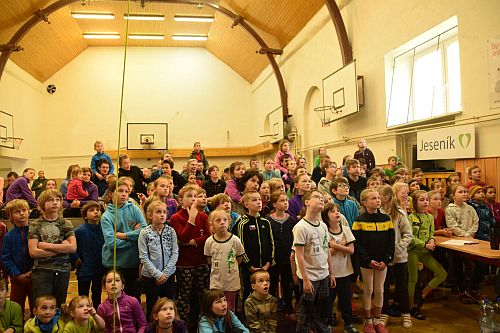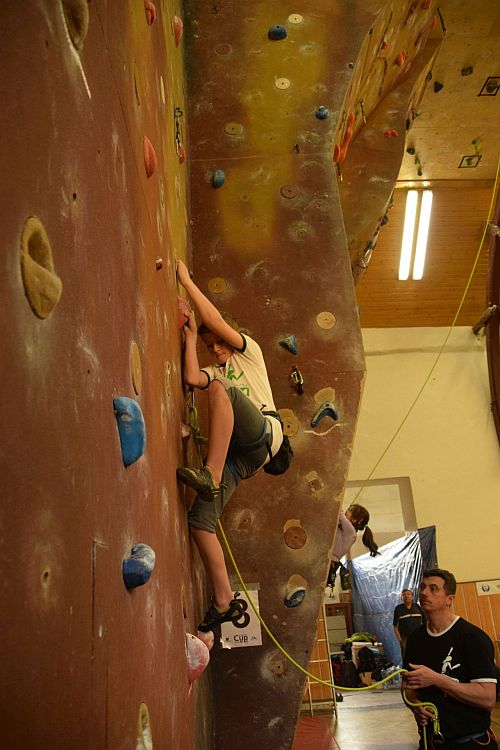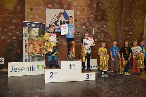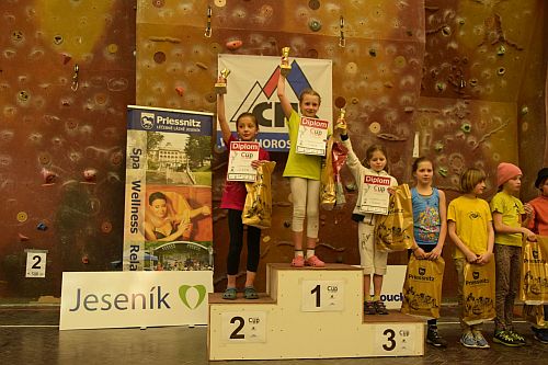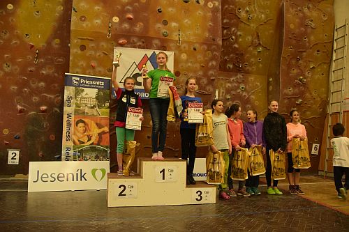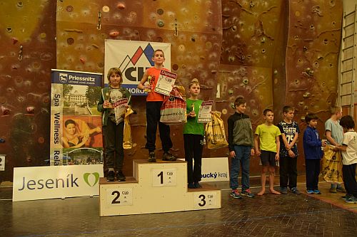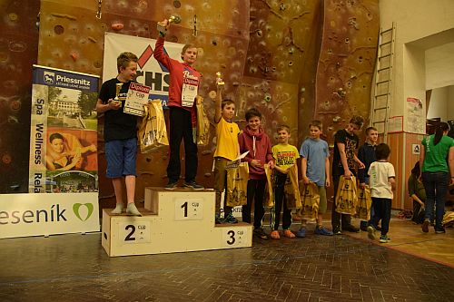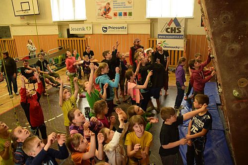Kolem osmé hodiny se začínají do tělocvičny Gymnázia Jeseník sjíždět závodníci ze všech koutů České republiky a dokonce i z blízkého Polska. V devět už jsou všichni závodníci celí netrpěliví a nejradši by nalezli do všech připravených cest. V půl desáté to všechno vypuklo. Do cest nalezli předlezci a děti si procházely všechny cesty s nimi.