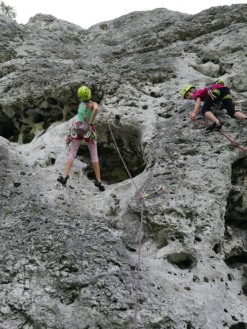 Děti byly naladěné k lezení na prvním konci a nadšení jim vydrželo celý víkend. Někteří dospělí předávali zkušenosti dětem, jiní od nich čerpali pozitivní energii. Zalezli si všichni, dokonce free solo s foťákem v ruce.