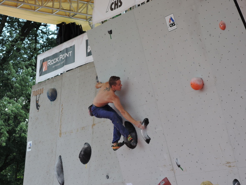 Také muži neměli snadné ani nástupy, natož topy, např. Martin Spilka potřeboval na tři zóny dvanáct pokusů a to samozřejmě ani ve výsledkových tabulkách nenajdete počty marných pokusů na zóny a topy. O to divácky zajímavější byly topy téměř na poslední chvíli časového limitu, např. Martin Kuhnel, který rozluštil, udržel a téměř topoval trojku na pátý pokus, poté ze sebe vydal všechnu tu sílu ještě jednou a kromě prvního měl dva. Vyhrál Martin Stráník, který si pokazil OS jen na prvním a posledním kousku.