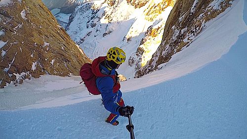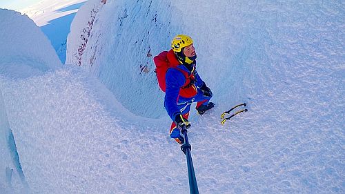 Lezl jsem převážně nejištěn. V Headwallu jsem se zajistil šroubem, ale to bylo hlavně proto, že jsem před odjezdem do Patagonie slíbil mé malé dceři, že se budu jistit. A napadlo mě, že právě při postupu přes Headwall, je pro to ten správný okamžik. Led byl mimořádně tvrdý a vůbec mi v něm nedržely mačky.