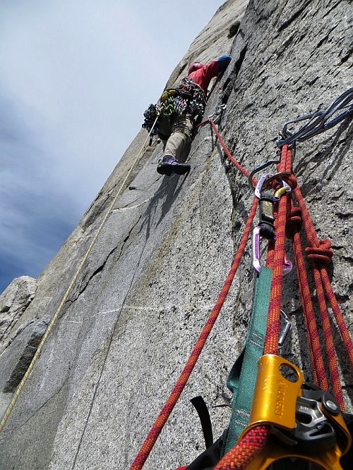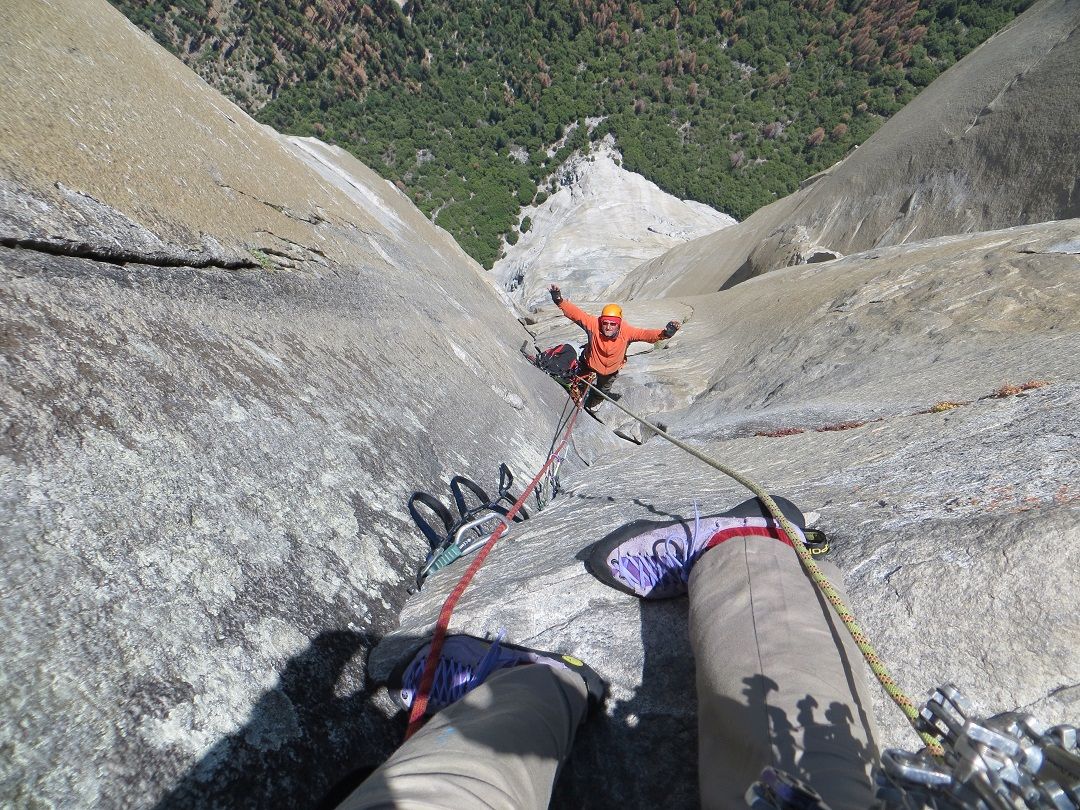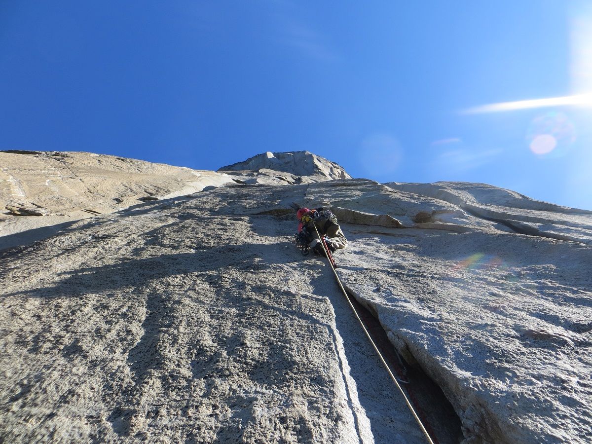 Už od prvého dňa liezol za nami pár sympatických mladých amerických lezcov. On, Greg Powell (1989), práve skončil štúdium medicíny a pred nástupom do práce si doprial dlhé lezecké prázdniny. Ona, Crystal Yin Lie (1988), Američanka ázijského pôvodu, doktorantka literatúry na univerzite. Obidvaja zbláznení do lezenia rovnako ako my. A to sme mali spoločné napriek rozdielu dvoch generácií. Greg je adrenalínový športovec, ktorý sa okrem lezenia venuje aj parašutizmu a surfovaniu na obrovských oceánskych vlnách. Drobnejšia Crystal je všestranná športovkyňa venujúca sa joge a predtým, ako začala vášnivo liezť, robila brutálne cyklistické podniky, napr. v roku 2011 prešla na bicykli krížom celú Ameriku, 60 dní a 6437 kilometrov. Nos je pre túto dvojicu len ich druhý bigwall.