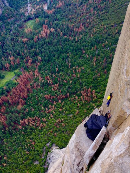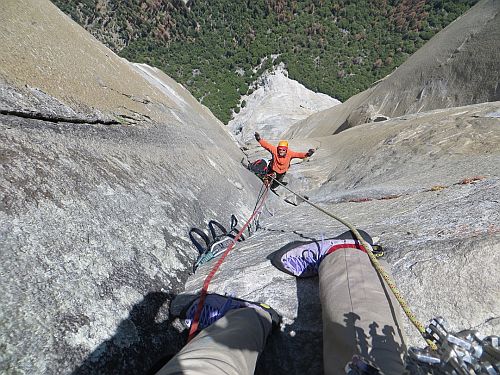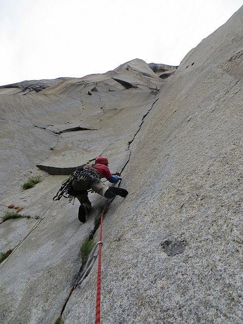 Prvý bivak, lepšie povedané nultý, sme mali na Sicle Ledge, kde sme vyžumarovali po fixoch neskoro poobede. Prvé štyri dĺžky sme vyliezli pred pár dňami a počkali, kým prejdú silné horúčavy. Druhý bivak bol na Dolt Tower. Krásna škára Stoveleg Crack bola ťažšia, ako som čakal. Ďalej sme liezli cez Jardinov traverz, kde nás zdržal zaseknutý batoh. Preto sme bivakovali jednu dĺžku pod Camp 4. Ďalší deň sme cez Great Roof doliezli do Camp 5, kde sme pre dážď a búrky bivakovali dva razy.
