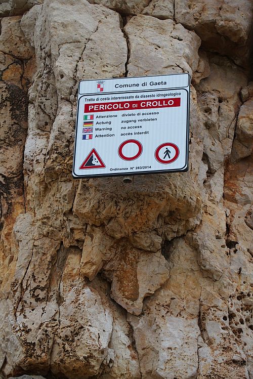 Zákaz na skalách na pláži trvající již několik let (od 2010) je prý z důvodu pádu skal, ale s největší pravděpodobností se pod tento vágní popis schovává i zastaralé jištění, což je asi hlavním důvodem. V těsné blízkosti moře jištění, které nemá korozivzdorné parametry dost rychle degraduje a tak město Gaeta, pod které oblast spadá, ji pro lezení uzavřelo.