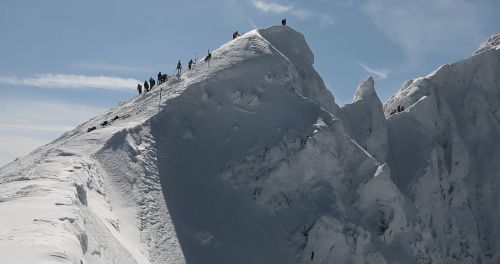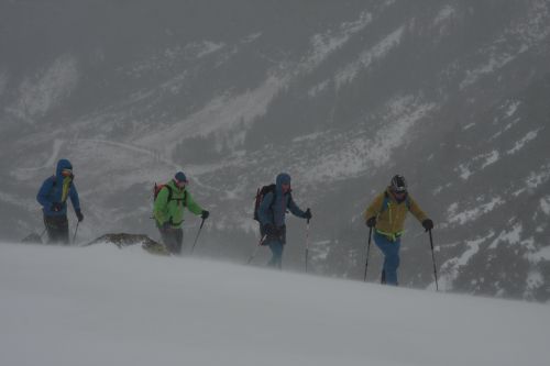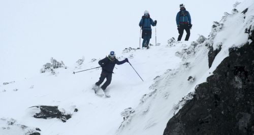 Na řadu přišly ale i technicky obtížnější pasáže. Třeba výstup na mačkách. Pro Tomáše Krause premiéra: „Poprvé nejen na mačkách, ale i takový reálný skialpinismus. Vždycky si vyjdu kousek stranou, abych si mohl sjet pěkný freeride, ale tohle – takový čistě skialpinistický den, ten si užívám poprvé.“