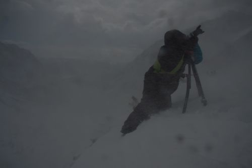 Ještě před tím jsme jim nachystali, aby se trochu unavili, skialpinistický sprint na sjezdovce. To se pochopitelně minulo účinkem a jejich na provozní teplotu zahřátá sportem zocelená těla šlapala za Rudolfem Žuffou jako dokonale fungující stroje. Ještěže musíme točit, jinak bychom se viděli naposledy asi tak maximálně dvě minuty po startu ve Spálené dolině.