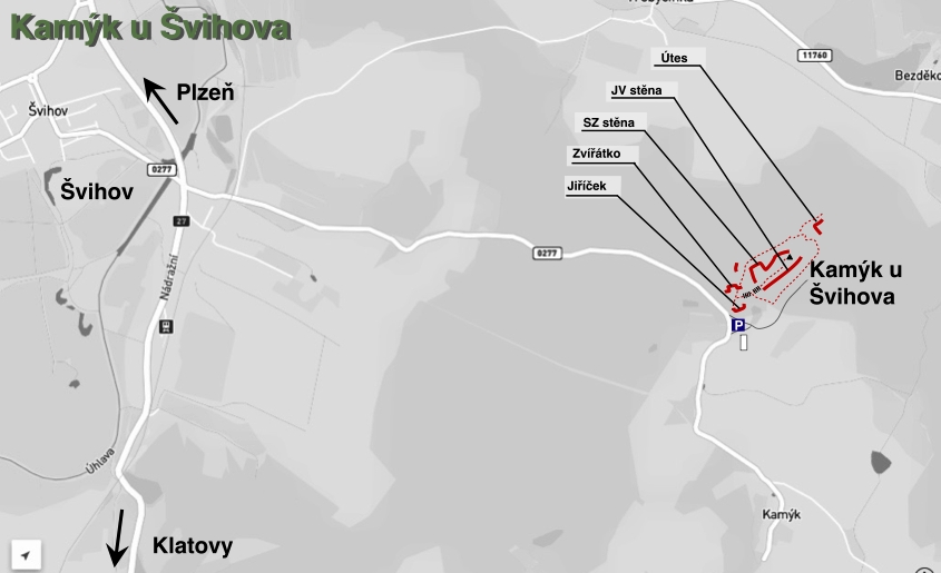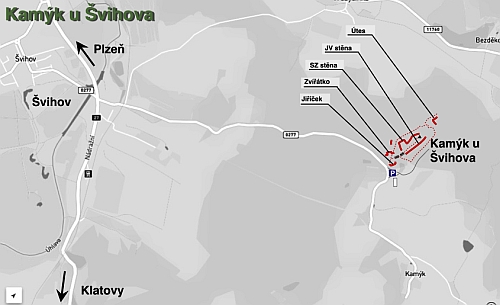 Nachází se 3 km východně od Švihova přímo u obce Kamýk. Výška stěn se pohybuje kolem 15 metrů. Většinu výstupů vytvořila dvojka plzeňských lezců Jirka Košař a Jirka Skuhrovec st.