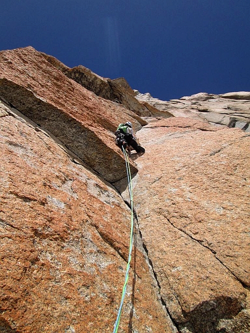 Dnešní menu. Layback, layback, hand jam. Layback, layback, fingerlock, layback. Někdo nášup? Layback, layback, mantle a..? Layback. Šutr vůkol letí. Ne, to byl něčí mobil. Trhlinky všech rozměrů. Krása. Nádhera. A ty panorámata. Na polici sníh. Naplň si velblouda. A první klíčenka. Slavná Fourty-meter wall. Růža jede. Je to robot. Stopka až na konci v koutku. Natahuje chobot po smyčce a je to. Trošku morfo. Jedem dál. Vypli topení. Tak přidej, Karle.
