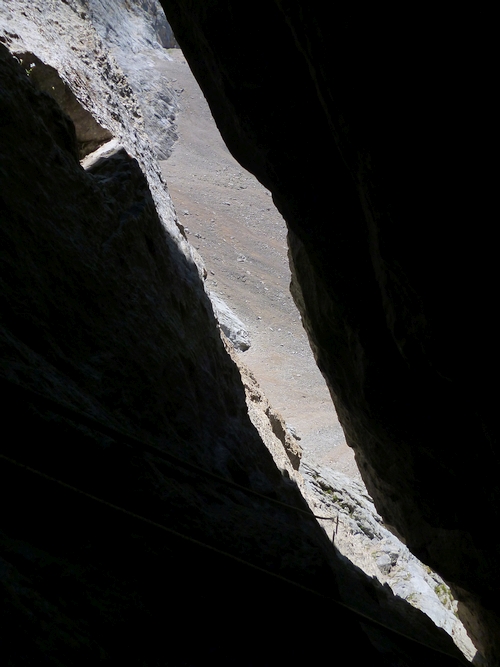 Sestupuje se naštěstí chodecky a po krátkém odpočinku pod stěnou pokračujeme směrem na Refugio. Cesta je jako obvykle delší, než jsme čekali, a zvláště prudký sestup po ocelových lanech ze sedla Horcados Rojos je s batohy fuška. Nicméněza 2,5 hodiny spatřujeme západní stěnu Naranjo de Bulnes přesně tak, jek ji mám uloženou v paměti.