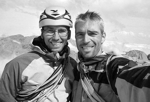 Co se děje na kopci po 14 hodinách lezení (do časového limitu z průvodce jsme se nevešli) všichni znáte: úleva, pohodlné boty, smotat lana, tyčinka, foto a co nejrychlejší sestup do údolí. Se Španěly nacházíme spojenými silami první slaňák v amfiteátru jižní stěny a využíváme lan obou družstev k rychlejšímu ústupu ze stěny. U chaty jsme o půl jedenácté – čaj, vaření jídla, pivo... stokrát zažito, pokaždé k nezaplacení.