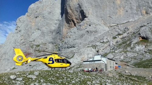 Chata Julian Delgado Ubeda (Vega Urriellu) 1950 m – přímo pod Z stěnou. Nástup k cestám 15 minut. K východní stěně 1 hodinu, k J stěně 1:15.